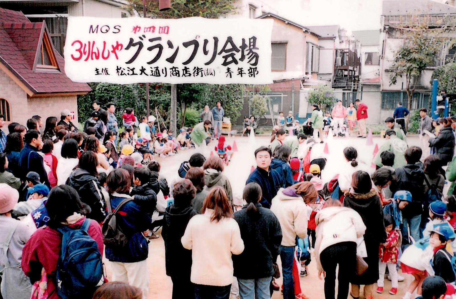この状況を改善するため、当時の商店街青年部が中心となりこの公園で「3りんしゃグランプリ」を開催。開催に伴い公園を貸し切ることで公園からホームレスを一層し、ベンチや一部の遊具の改装行い、無事に治安が回復した。
