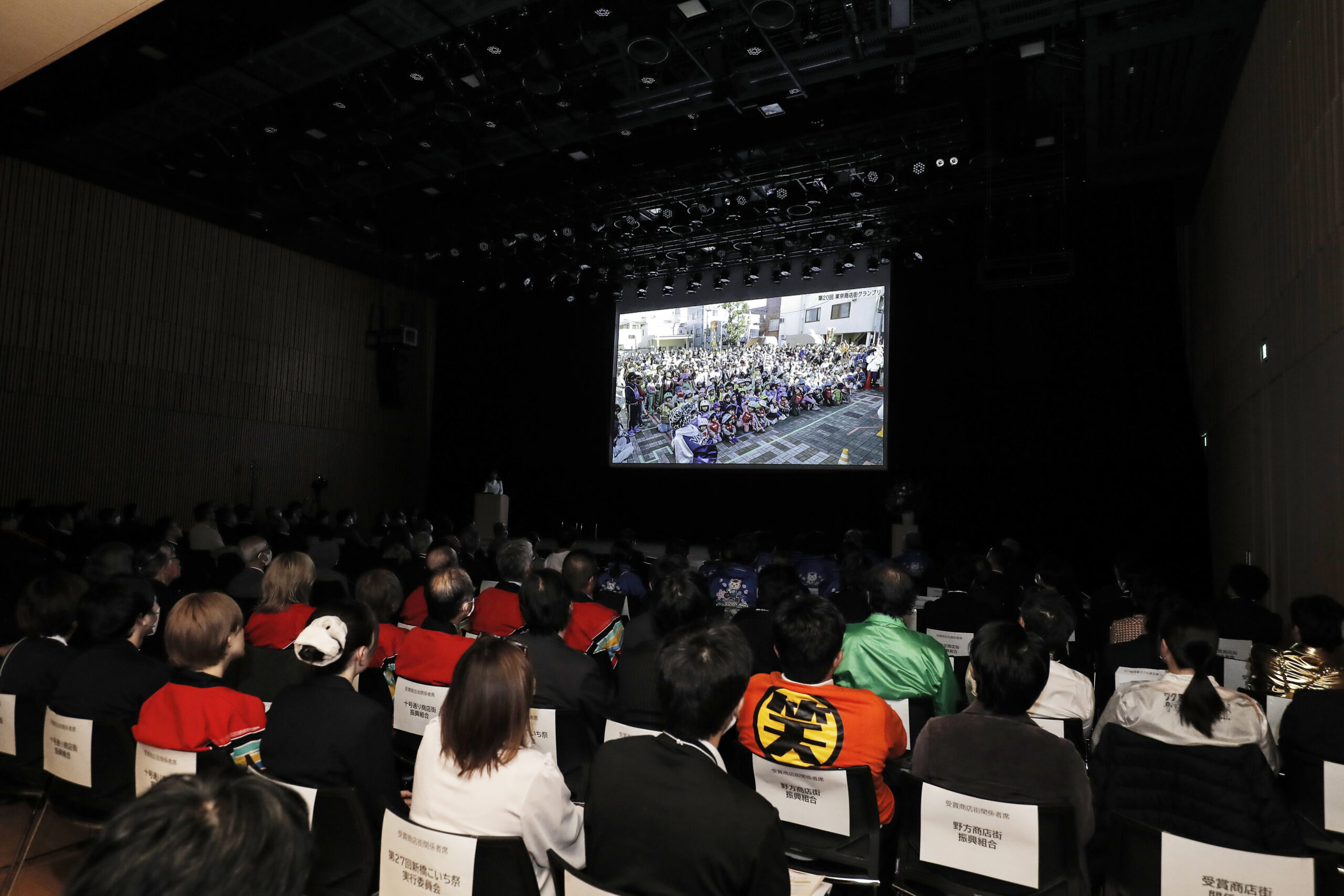 今年は約30の商店街から応募があり、審査の結果、当商店街を含めた5つの商店街が最終審査にノミネートされました。その後、5つの商店街がそれぞれ東京都庁にてプレゼンを行い、有識者による厳正な審査の末、11月17日に神田明神ホールにて最終順位の発表となりました。