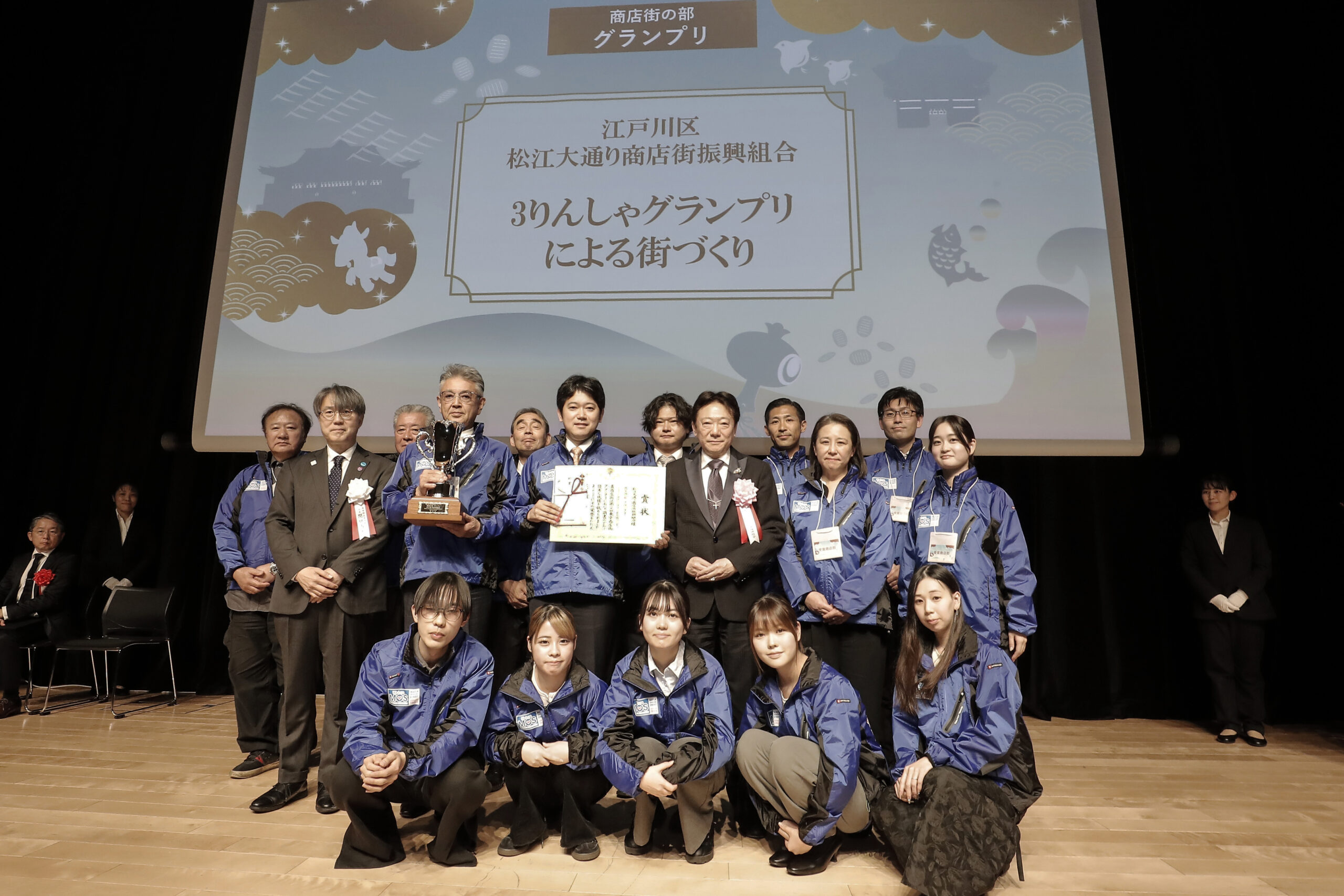 2025年11月17日 神田明神ホールにて「第20回東京商店街グランプリ」の表彰式が行われました。その表彰式において、松江大通り商店街の 「3りんしゃグランプリによる街づくり」 が栄えあるグランプリに輝きました!